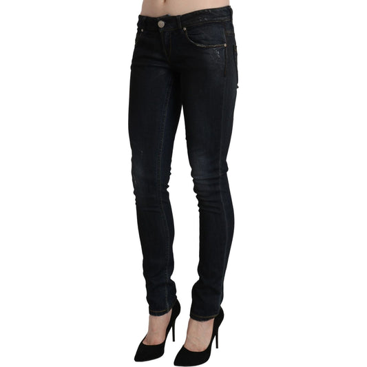 Acht Dark Blue Washed Cotton Skinny Denim Low Waist Jeans