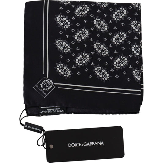 Dolce & Gabbana Black Patterned Square Scarf Silk Handkerchief