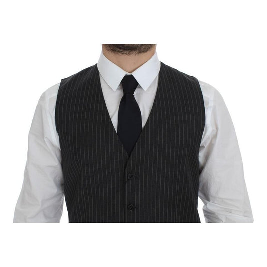 Dolce & Gabbana Gray Striped Wool Single Breasted Vest