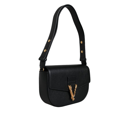 Versace Black Grainy Calf Leather Logo Crossbody Shoulder Bag